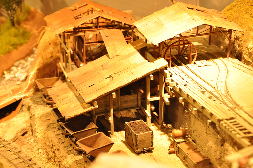 一番高い面でループを描いているのが本線(炭鉱線)で、一段低い面には「人車軌道」が敷かれています。
