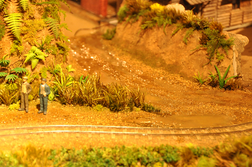 右端のぬかるみがホンモノの泥水の様ですが、透明のエポキシを使用して表現されているとのこと。
