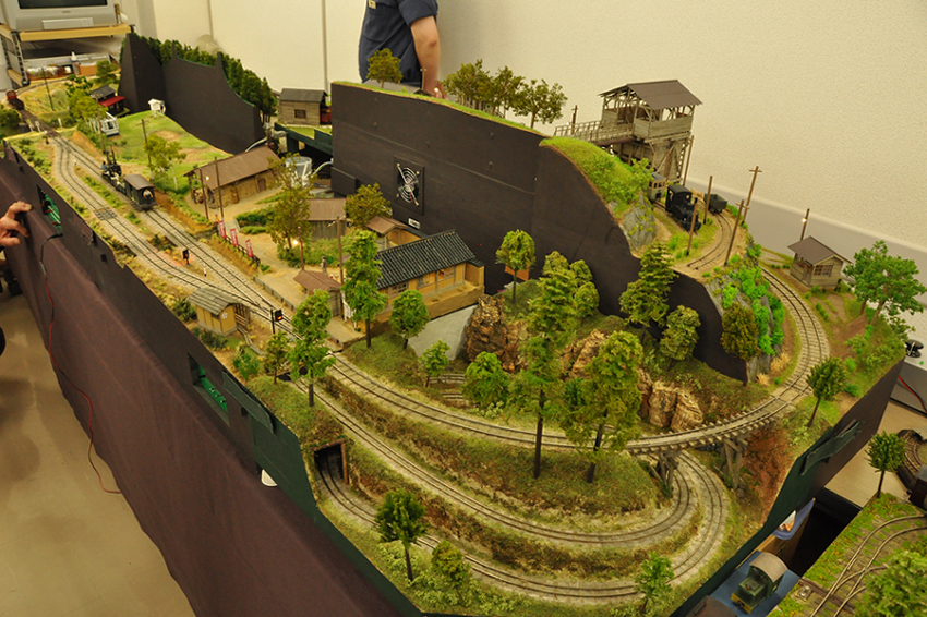 前回の記事では個人出展作品をご紹介しましたが、こちらはメンバーの方々製作のモジュールを連結した長大なループにおける運転の様子です。