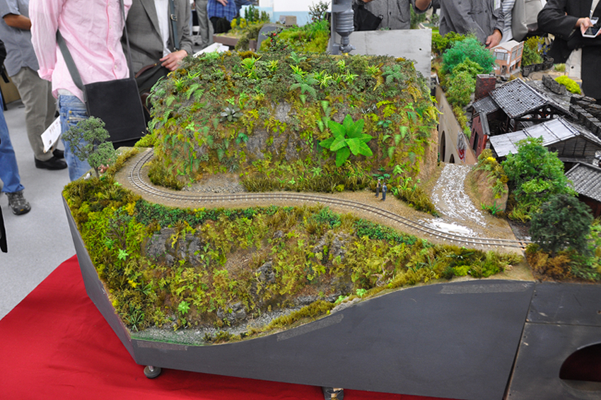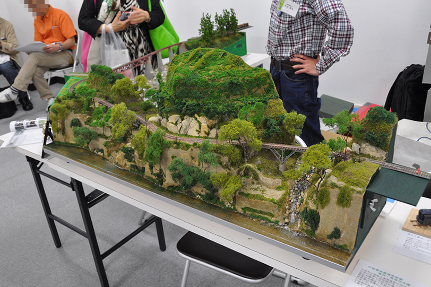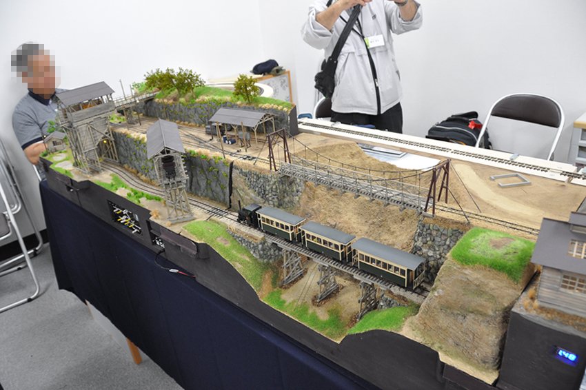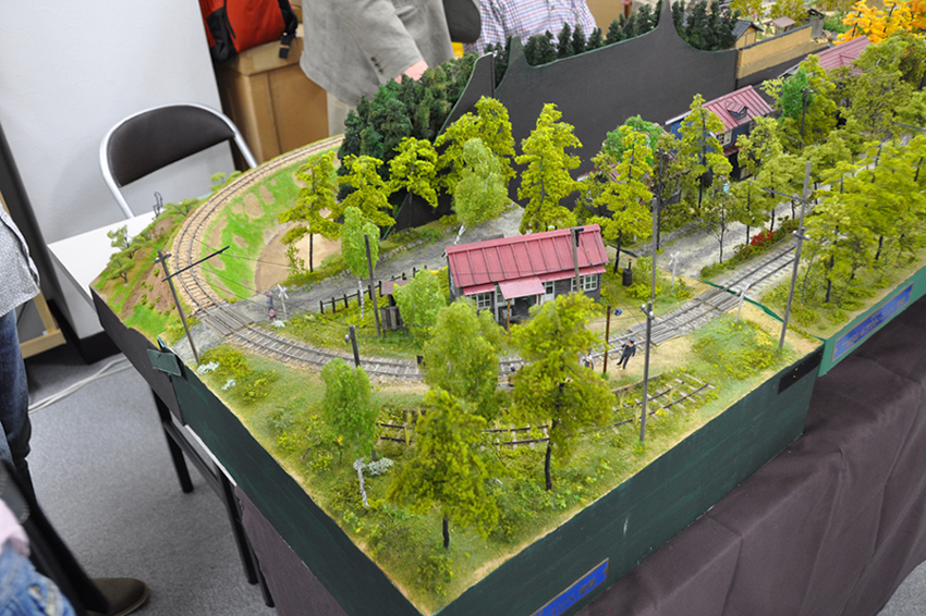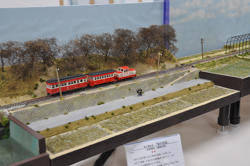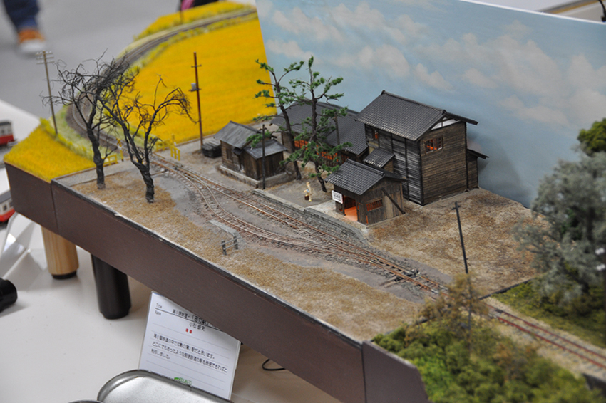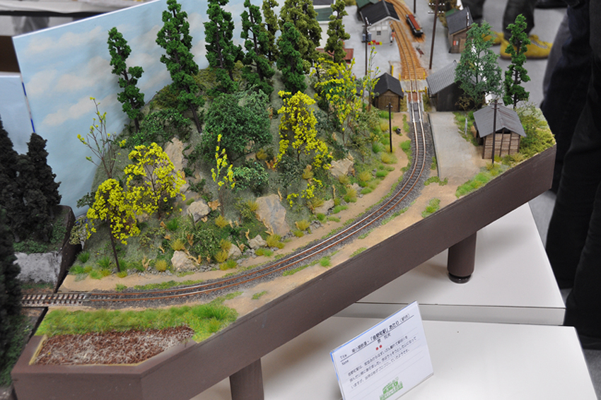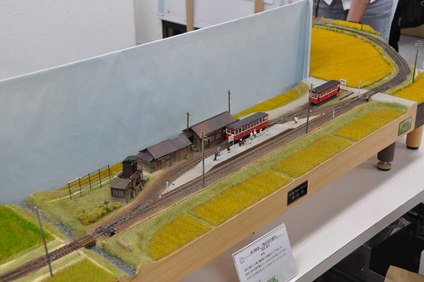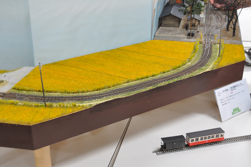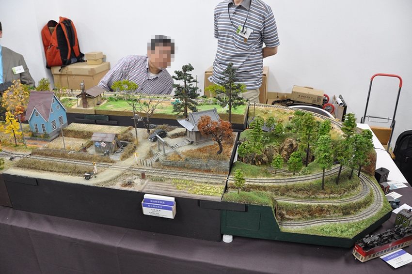 レポート(と言うほどのものではありませんが)の2回目です。 ↑雨降りの情景です。 ・・・これはスゴイ。のちほどまた出てきます。 やはり写真がかなり多いので記事を折りたたんでいます。 右下の「more」、またはこの記事のタイトルをクリックして続きをどうぞ。 さっそく昨日の続きです。 ↑Oナローモジュールクラブさんのブースです。 やはり大きめの車両は迫力が違いますね。 こんな大きなのを作っちゃったら、ウチには絶対置けないなぁ・・・ ↑写真にはありませんが、しゃがんで目線を低くすると、完全にモジュールの風景の中に入り込めますヨ(意識がですが)。 ↑別荘地のような涼やかさ。 効果的に配置されたフィギュアがいい味を出しています。 ↑よく見ると、架線が張ってあるんですよね。 たまたま脱線した車両を元に戻すのに苦労されていて、その時初めて気づきました。 ↑こちらはONMC anexさんのブース。 Oナローモジュールクラブさんの内部ユニットでしょうか? 向かって右側のモジュールなんて、モロに好みですよ。 すごいなぁ・・・ ↑その下の線路にも小さなSLが・・・ ↑建物の中にはちゃんと人が居たりします。 細かいですねぇ・・・ こちら側のパネルの左上(貼ってある写真の左側)に青いデジタル表示(数字)があって、ちょこちょこ変動していたのですが、これが何かなのか質問してくるのを失念してしまいました。 電圧計か何かなんでしょうか? ↑しゃがんで見上げると、部屋の白い壁が効果を発揮して、曇天の下の本物の風景の中に居る気にさせてくれます。 とても丁寧に作られていてリアルでした。 ↑駿遠倶楽部さんのブース。 終端駅のモジュールですね。 終端駅っていうのは独特の雰囲気があって大好きです。 ↑同上。 お茶の畑が独特の情景を現出させていますねぇ。 ただのループに見えて、複雑なRの組み合わせと、曲線を描いた駅での分岐によって、飽きのこない構成になっています。 ↑こちらもお茶畑が。 真ん中に一本通った道には通学途中の学生さんたちがいます。 のどかな雰囲気が良く出ています。 ↑こちらは高低差のある複雑な地形の中を走るひと筋のレール・・・と言う構成。 L字型に組まれていて、折り返し運転をされておられました。 一番手前は川なのですが、ベースボードの上に1センチぐらいの厚みの川が作られていて、目線を水平にして見てみると、川の断面までもが見える状態・・・。 枠を作って、樹脂(かな?)を流して、固まってから枠を外す・・・ と言う様な工程で作るのだと思いますが、さぞかし大変だったのではないでしょうか? ↑「L字」のもう一方の様子。 なんと巨大な川をまたぐ橋梁です。 十分な見ごたえがありますねぇ。 ↑軽便モジュール倶楽部さんのブース。 柱の周りをぐるりとまわる状態にモジュールを連結されておりました。 ↑私が訪れた時は、この朱色とクリーム色のツートンカラーの車両がトコトコと走っておりました。 ↑まだ収穫前の、わずかに色づき始めてきた頃合の田んぼが綺麗な、こちらのコーナー部から順番に右へと進んでみます。 ↑こちらは川・・・と言うよりは沼地か用水池と言ったところでしょうか? そんな色合いが良く出ています。 ↑学生さんカップルが仲良く下校中? 私には未経験のシチュエーションです。 ↑背景パネルの上辺のラインと重なっていて、最初は気づかなかったのですが、よく見ると上空にバケットがぶら下がっています。 右の鉄塔がその支柱というわけですね。 ↑次のコーナー部です。 小さな駅が配されています。 木造倉庫(?)の手前のスクーターとか、小物がうるさすぎない程度にほどよく設置されていますね。 ↑こちらはやや大きめで、列車の交換が可能な駅です。 ホームにも数名のお客さんの姿が見えます。 ↑またコーナー部。 こちらは刈り入れ直前のような田んぼです。 近くで見ても、とても綺麗でした。 ↑こちらは小さめの駅ですが、列車の交換は可能なようです。 寂しそうな風景が、逆にいい空気感を漂わせていますね。 ↑中央の川がとても綺麗なモジュール。 川・・・と言うか渓流ですね。 その川の表情をアップで撮影したんですが、ピンボケになっておりました・・・ 残念。 ↑こちらは手前に川が流れています。 水面に石が顔を覗かせていて、結構リアルでした。 こちらもアップの撮影に失敗(泣) と言うか、この写真自体も、右手前の木のかたまりにのみピントが合ってしまって失敗気味です・・・。 まだまだ未熟・・・ すみません。 ↑最後のコーナー部。 けっこうゴツい山肌にいろんな木々が生えています。 木の表現って、リアルにしようとすると難しそうですよねー。 よくまあこんなにリアルに作れるものだと、感心することしきりです。 ↑ここで1周。右隣はスタート地点の田んぼコーナー部です。 待避線のある駅のモジュールですね。 レール運搬貨車が待避線で静かに佇んでいました。 ↑DMCさんのブース。 ココの密度が凄かった! ↑「黒山の人だかり