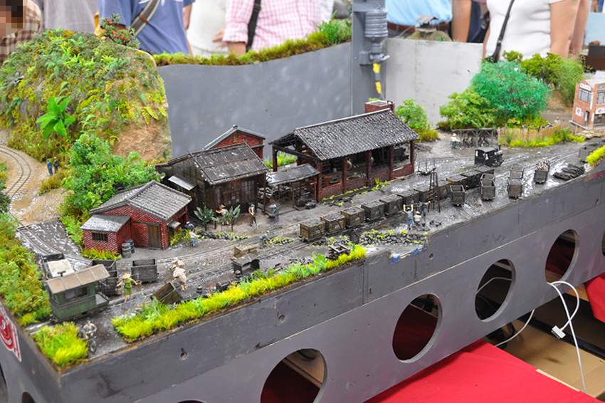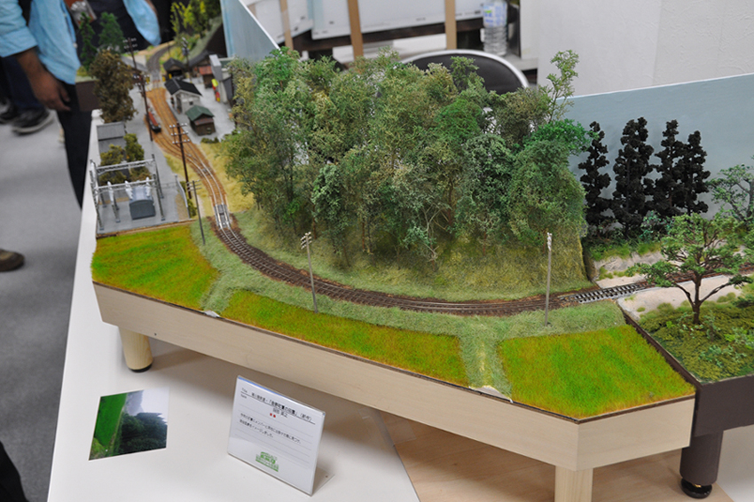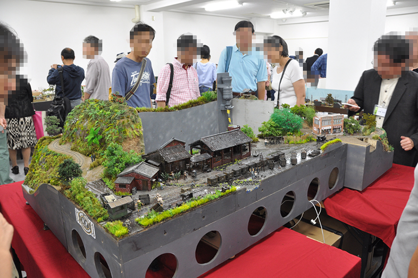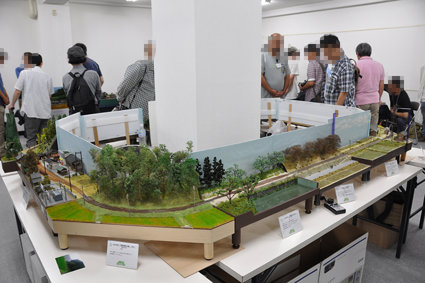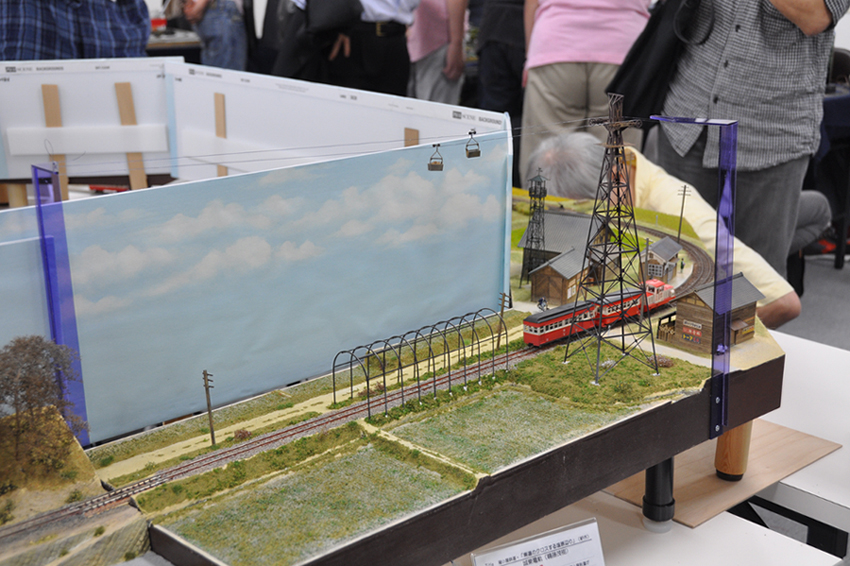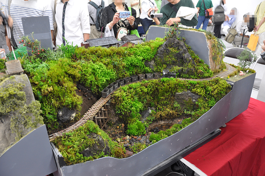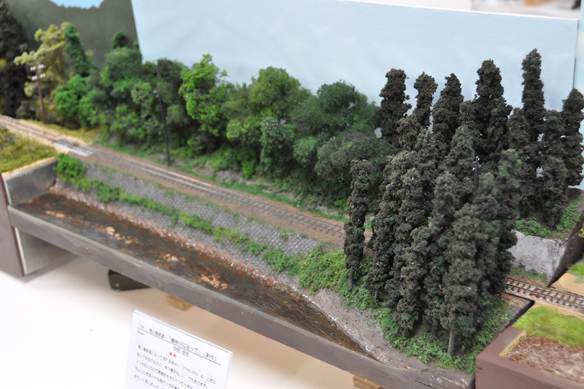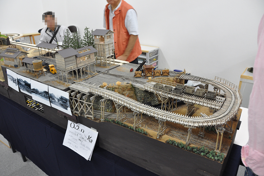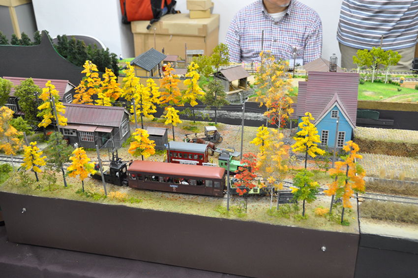 レポート(と言うほどのものではありませんが)の2回目です。 ↑雨降りの情景です。 ・・・これはスゴイ。のちほどまた出てきます。 やはり写真がかなり多いので記事を折りたたんでいます。 右下の「more」、またはこの記事のタイトルをクリックして続きをどうぞ。 さっそく昨日の続きです。 ↑Oナローモジュールクラブさんのブースです。 やはり大きめの車両は迫力が違いますね。 こんな大きなのを作っちゃったら、ウチには絶対置けないなぁ・・・ ↑写真にはありませんが、しゃがんで目線を低くすると、完全にモジュールの風景の中に入り込めますヨ(意識がですが)。 ↑別荘地のような涼やかさ。 効果的に配置されたフィギュアがいい味を出しています。 ↑よく見ると、架線が張ってあるんですよね。 たまたま脱線した車両を元に戻すのに苦労されていて、その時初めて気づきました。 ↑こちらはONMC anexさんのブース。 Oナローモジュールクラブさんの内部ユニットでしょうか? 向かって右側のモジュールなんて、モロに好みですよ。 すごいなぁ・・・ ↑その下の線路にも小さなSLが・・・ ↑建物の中にはちゃんと人が居たりします。 細かいですねぇ・・・ こちら側のパネルの左上(貼ってある写真の左側)に青いデジタル表示(数字)があって、ちょこちょこ変動していたのですが、これが何かなのか質問してくるのを失念してしまいました。 電圧計か何かなんでしょうか? ↑しゃがんで見上げると、部屋の白い壁が効果を発揮して、曇天の下の本物の風景の中に居る気にさせてくれます。 とても丁寧に作られていてリアルでした。 ↑駿遠倶楽部さんのブース。 終端駅のモジュールですね。 終端駅っていうのは独特の雰囲気があって大好きです。 ↑同上。 お茶の畑が独特の情景を現出させていますねぇ。 ただのループに見えて、複雑なRの組み合わせと、曲線を描いた駅での分岐によって、飽きのこない構成になっています。 ↑こちらもお茶畑が。 真ん中に一本通った道には通学途中の学生さんたちがいます。 のどかな雰囲気が良く出ています。 ↑こちらは高低差のある複雑な地形の中を走るひと筋のレール・・・と言う構成。 L字型に組まれていて、折り返し運転をされておられました。 一番手前は川なのですが、ベースボードの上に1センチぐらいの厚みの川が作られていて、目線を水平にして見てみると、川の断面までもが見える状態・・・。 枠を作って、樹脂(かな?)を流して、固まってから枠を外す・・・ と言う様な工程で作るのだと思いますが、さぞかし大変だったのではないでしょうか? ↑「L字」のもう一方の様子。 なんと巨大な川をまたぐ橋梁です。 十分な見ごたえがありますねぇ。 ↑軽便モジュール倶楽部さんのブース。 柱の周りをぐるりとまわる状態にモジュールを連結されておりました。 ↑私が訪れた時は、この朱色とクリーム色のツートンカラーの車両がトコトコと走っておりました。 ↑まだ収穫前の、わずかに色づき始めてきた頃合の田んぼが綺麗な、こちらのコーナー部から順番に右へと進んでみます。 ↑こちらは川・・・と言うよりは沼地か用水池と言ったところでしょうか? そんな色合いが良く出ています。 ↑学生さんカップルが仲良く下校中? 私には未経験のシチュエーションです。 ↑背景パネルの上辺のラインと重なっていて、最初は気づかなかったのですが、よく見ると上空にバケットがぶら下がっています。 右の鉄塔がその支柱というわけですね。 ↑次のコーナー部です。 小さな駅が配されています。 木造倉庫(?)の手前のスクーターとか、小物がうるさすぎない程度にほどよく設置されていますね。 ↑こちらはやや大きめで、列車の交換が可能な駅です。 ホームにも数名のお客さんの姿が見えます。 ↑またコーナー部。 こちらは刈り入れ直前のような田んぼです。 近くで見ても、とても綺麗でした。 ↑こちらは小さめの駅ですが、列車の交換は可能なようです。 寂しそうな風景が、逆にいい空気感を漂わせていますね。 ↑中央の川がとても綺麗なモジュール。 川・・・と言うか渓流ですね。 その川の表情をアップで撮影したんですが、ピンボケになっておりました・・・ 残念。 ↑こちらは手前に川が流れています。 水面に石が顔を覗かせていて、結構リアルでした。 こちらもアップの撮影に失敗(泣) と言うか、この写真自体も、右手前の木のかたまりにのみピントが合ってしまって失敗気味です・・・。 まだまだ未熟・・・ すみません。 ↑最後のコーナー部。 けっこうゴツい山肌にいろんな木々が生えています。 木の表現って、リアルにしようとすると難しそうですよねー。 よくまあこんなにリアルに作れるものだと、感心することしきりです。 ↑ここで1周。右隣はスタート地点の田んぼコーナー部です。 待避線のある駅のモジュールですね。 レール運搬貨車が待避線で静かに佇んでいました。 ↑DMCさんのブース。 ココの密度が凄かった! ↑「黒山の人だかり