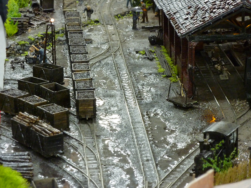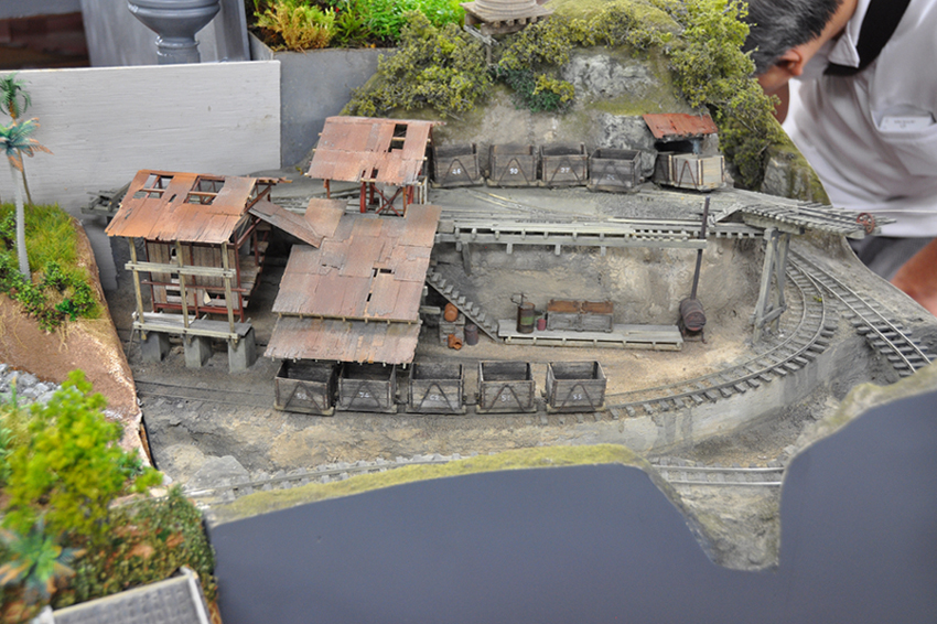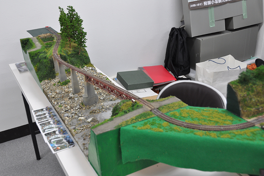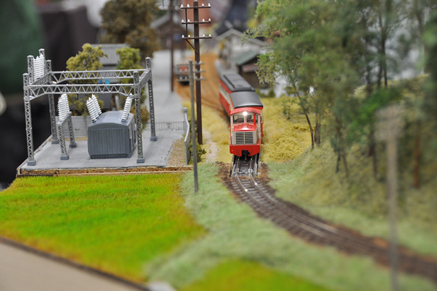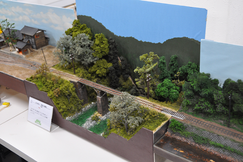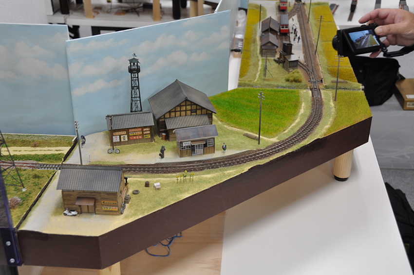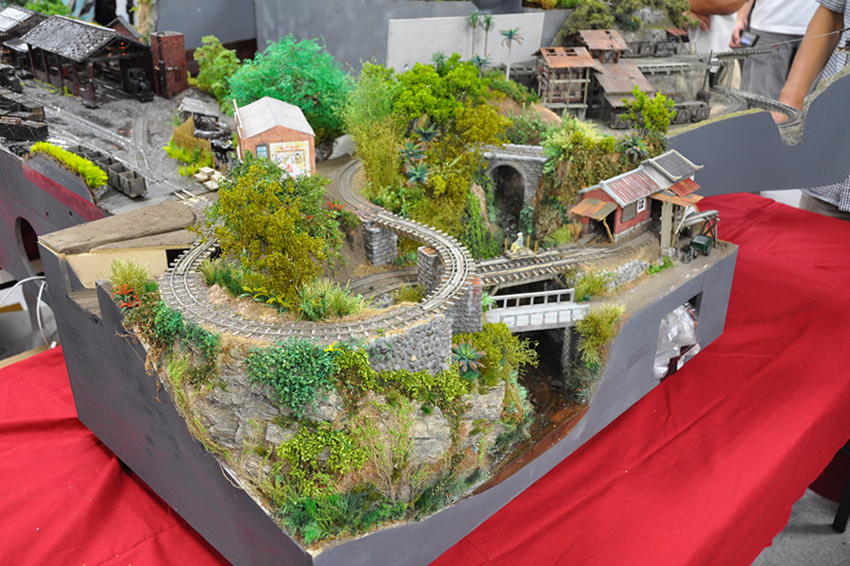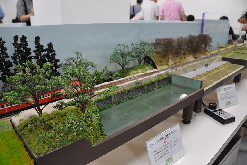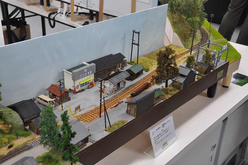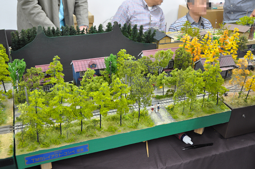 レポート(と言うほどのものではありませんが)の2回目です。 ↑雨降りの情景です。 ・・・これはスゴイ。のちほどまた出てきます。 やはり写真がかなり多いので記事を折りたたんでいます。 右下の「more」、またはこの記事のタイトルをクリックして続きをどうぞ。 さっそく昨日の続きです。 ↑Oナローモジュールクラブさんのブースです。 やはり大きめの車両は迫力が違いますね。 こんな大きなのを作っちゃったら、ウチには絶対置けないなぁ・・・ ↑写真にはありませんが、しゃがんで目線を低くすると、完全にモジュールの風景の中に入り込めますヨ(意識がですが)。 ↑別荘地のような涼やかさ。 効果的に配置されたフィギュアがいい味を出しています。 ↑よく見ると、架線が張ってあるんですよね。 たまたま脱線した車両を元に戻すのに苦労されていて、その時初めて気づきました。 ↑こちらはONMC anexさんのブース。 Oナローモジュールクラブさんの内部ユニットでしょうか? 向かって右側のモジュールなんて、モロに好みですよ。 すごいなぁ・・・ ↑その下の線路にも小さなSLが・・・ ↑建物の中にはちゃんと人が居たりします。 細かいですねぇ・・・ こちら側のパネルの左上(貼ってある写真の左側)に青いデジタル表示(数字)があって、ちょこちょこ変動していたのですが、これが何かなのか質問してくるのを失念してしまいました。 電圧計か何かなんでしょうか? ↑しゃがんで見上げると、部屋の白い壁が効果を発揮して、曇天の下の本物の風景の中に居る気にさせてくれます。 とても丁寧に作られていてリアルでした。 ↑駿遠倶楽部さんのブース。 終端駅のモジュールですね。 終端駅っていうのは独特の雰囲気があって大好きです。 ↑同上。 お茶の畑が独特の情景を現出させていますねぇ。 ただのループに見えて、複雑なRの組み合わせと、曲線を描いた駅での分岐によって、飽きのこない構成になっています。 ↑こちらもお茶畑が。 真ん中に一本通った道には通学途中の学生さんたちがいます。 のどかな雰囲気が良く出ています。 ↑こちらは高低差のある複雑な地形の中を走るひと筋のレール・・・と言う構成。 L字型に組まれていて、折り返し運転をされておられました。 一番手前は川なのですが、ベースボードの上に1センチぐらいの厚みの川が作られていて、目線を水平にして見てみると、川の断面までもが見える状態・・・。 枠を作って、樹脂(かな?)を流して、固まってから枠を外す・・・ と言う様な工程で作るのだと思いますが、さぞかし大変だったのではないでしょうか? ↑「L字」のもう一方の様子。 なんと巨大な川をまたぐ橋梁です。 十分な見ごたえがありますねぇ。 ↑軽便モジュール倶楽部さんのブース。 柱の周りをぐるりとまわる状態にモジュールを連結されておりました。 ↑私が訪れた時は、この朱色とクリーム色のツートンカラーの車両がトコトコと走っておりました。 ↑まだ収穫前の、わずかに色づき始めてきた頃合の田んぼが綺麗な、こちらのコーナー部から順番に右へと進んでみます。 ↑こちらは川・・・と言うよりは沼地か用水池と言ったところでしょうか? そんな色合いが良く出ています。 ↑学生さんカップルが仲良く下校中? 私には未経験のシチュエーションです。 ↑背景パネルの上辺のラインと重なっていて、最初は気づかなかったのですが、よく見ると上空にバケットがぶら下がっています。 右の鉄塔がその支柱というわけですね。 ↑次のコーナー部です。 小さな駅が配されています。 木造倉庫(?)の手前のスクーターとか、小物がうるさすぎない程度にほどよく設置されていますね。 ↑こちらはやや大きめで、列車の交換が可能な駅です。 ホームにも数名のお客さんの姿が見えます。 ↑またコーナー部。 こちらは刈り入れ直前のような田んぼです。 近くで見ても、とても綺麗でした。 ↑こちらは小さめの駅ですが、列車の交換は可能なようです。 寂しそうな風景が、逆にいい空気感を漂わせていますね。 ↑中央の川がとても綺麗なモジュール。 川・・・と言うか渓流ですね。 その川の表情をアップで撮影したんですが、ピンボケになっておりました・・・ 残念。 ↑こちらは手前に川が流れています。 水面に石が顔を覗かせていて、結構リアルでした。 こちらもアップの撮影に失敗(泣) と言うか、この写真自体も、右手前の木のかたまりにのみピントが合ってしまって失敗気味です・・・。 まだまだ未熟・・・ すみません。 ↑最後のコーナー部。 けっこうゴツい山肌にいろんな木々が生えています。 木の表現って、リアルにしようとすると難しそうですよねー。 よくまあこんなにリアルに作れるものだと、感心することしきりです。 ↑ここで1周。右隣はスタート地点の田んぼコーナー部です。 待避線のある駅のモジュールですね。 レール運搬貨車が待避線で静かに佇んでいました。 ↑DMCさんのブース。 ココの密度が凄かった! ↑「黒山の人だかり