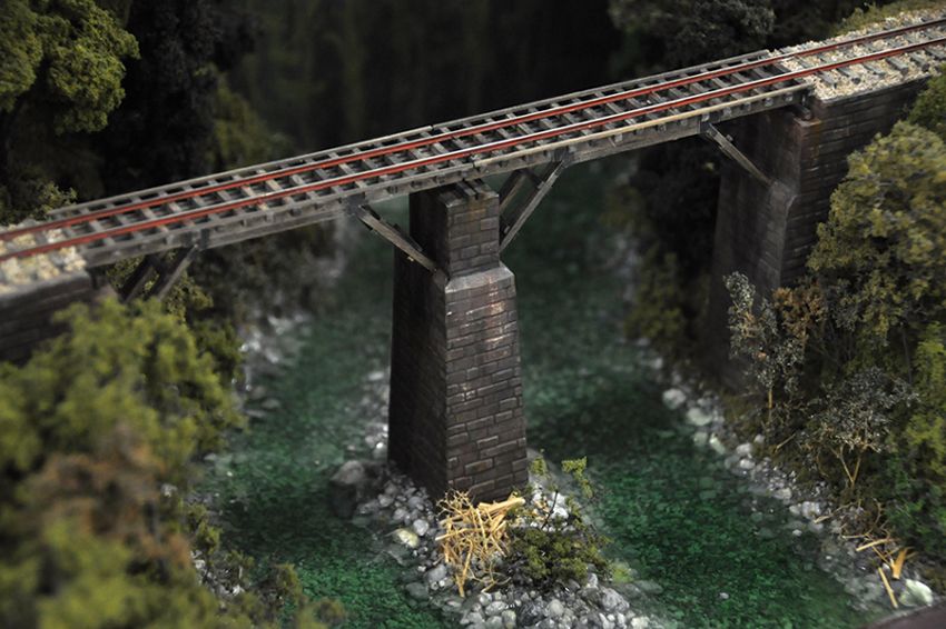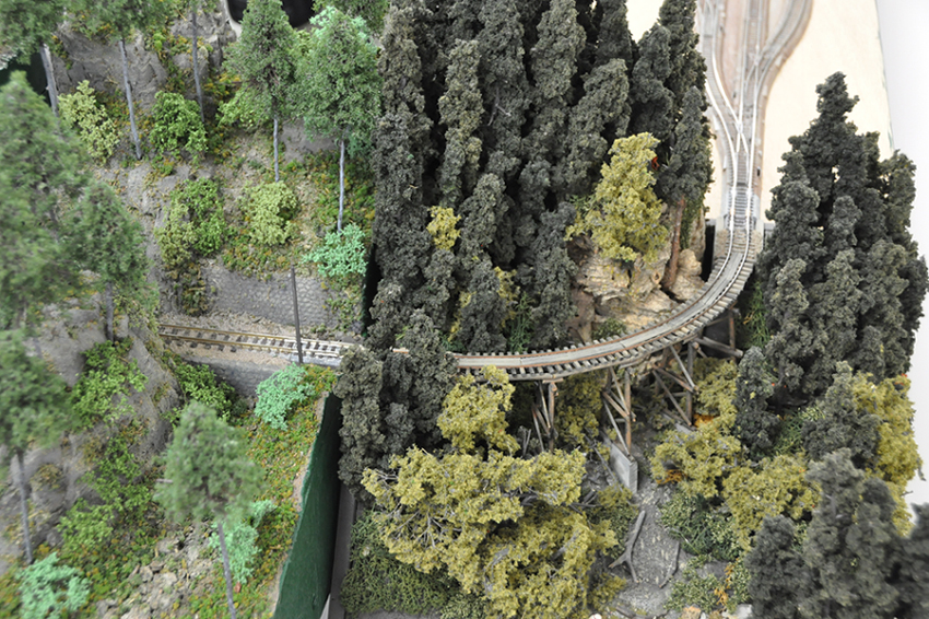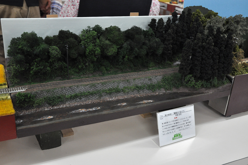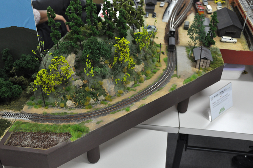 ↑こういう山裾部分のレイアウトをかつて製作したことがあるのですが(いや、中学時代ですけど)、木や下ばえの表現に四苦八苦した覚えがあります。