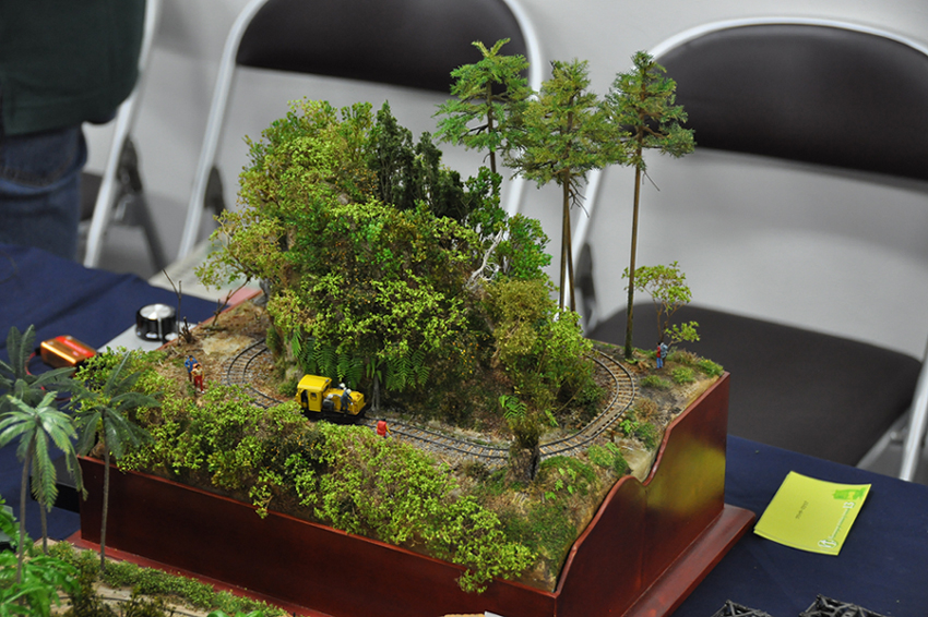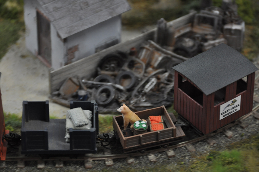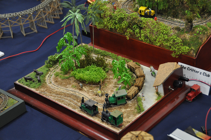 サトウキビか何かでしょうか?真ん中の畑で刈りいれた作物を運ぶ小さな列車なのですが、刈り入れ時に出た端切れがレールの内外に多数散乱している様子が細かく表現されていて、良くできておりました。