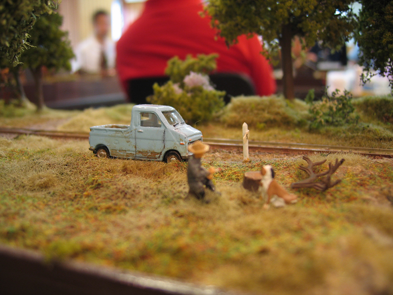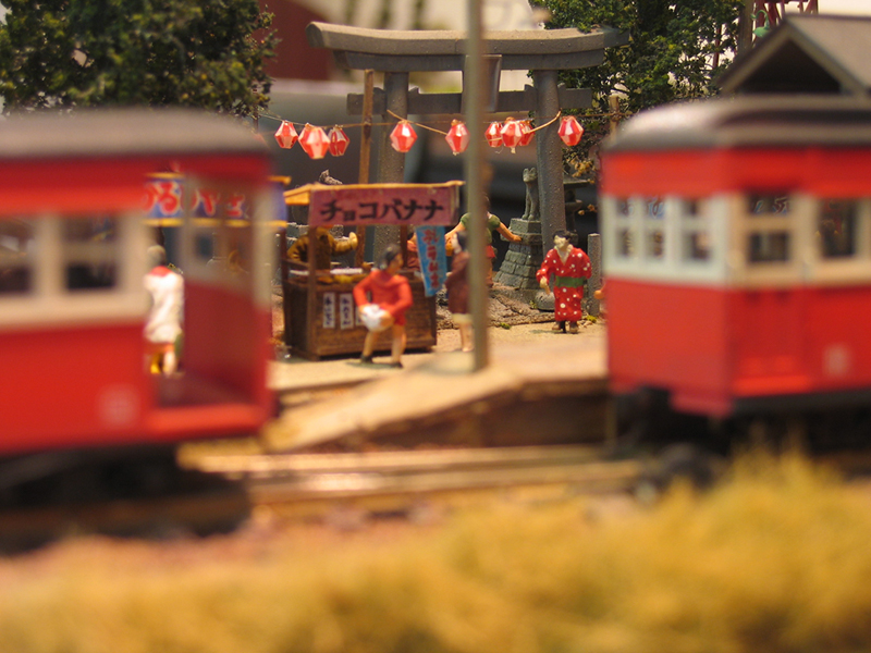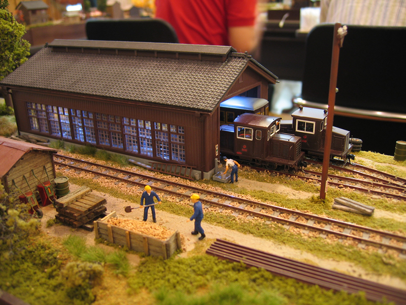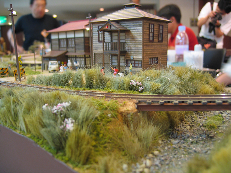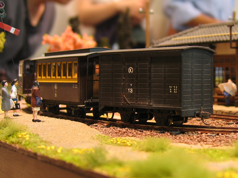 今回も行って来ましたよ、軽便鉄道模型祭。 僕が手を出している世界はNゲージですが、なぜかこのイベントは毎回楽しみで、実際とても楽しいのです。 そのうちナローの世界に手を染めてしまうでしょうね、僕は(笑) ※長くなりますので右下の「more→」をクリックして続きをどうぞ。 場所は前回と同じ、目黒さつき会館でした。 今回は迷うことなく、目黒寄生虫館へ行ってしまうと言うおバカぶりも発揮することなくすんなりと目的地へ到着しましたよ(笑)(←前回やってしまったのです) 入り口で入場券を買い求め、まずは軽便モジュール倶楽部さんのモジュールから堪能することにしました。 最初にお断りしておきますと、全てのモジュールを撮影したつもりでも写真の出来の良し悪しの関係(僕にウデがないだけ)で今回ご紹介できない作品もいくつか存在していると思います。 また、本当はそれぞれのモジュールの作者さんのお名前等を差し支えない範囲でご紹介するべきなんでしょうが、残念ながらそこまで詳しくリサーチせずに撮影をさせて頂きましたので、完全に僕個人の主観的なレポとなってしまっている事をご承知おきくださいませ。 ↑この雰囲気がたまりませんねぇ・・・ 田んぼとか土の地面が大好きです。 ↑僕の子供の頃よりもさらに昔の情景ですね・・・ でも懐かしく感じてしまうのは何故なんでしょう? ↑手前の木々にピントが合ってしまいました・・・ちょっと残念。 いい感じの車庫でした。 ↑この写真では判りづらいですが、極小のLEDにより街灯が点灯しています。 スゴイ!! ↑オート三輪とか、細部にまで拘っているのがひしひしと感じられますね。 ↑こちらは前回も出展されてましたね。 やはり街灯が点灯しています。 ↑祭りで賑わう境内の入り口・・・ 雰囲気が最高です。 ↑トンネルの上で別の単線がクロスしています。 静かな佇まいがいいですねぇ。 ↑暗くなっちゃって判りませんが、駅舎の中には人が二人ベンチに腰掛けていました。 ↑なんだかものすごくドラマを感じさせてくれる情景です。 ピントが奥の車に合ってしまっていますが・・・ ↑車庫の中は当然ライトアップされています。 手前の作業員たちがいい感じですね。 ↑立てかけてあるネコ(一輪車)が細かくてスゴイです。 ↑ああっ!こんなところにかつての蒸気機関車が・・・ 「ノスタルジックヒーロー」を読んだことがある人ならば「草ヒロ」と言う呼称がしっくりと来るハズ(笑) ↑この小屋も作りが細かいですね。 ちょっとした小道具がリアル感を増しています。 ↑周りの木々がとにかくスゴイ。 ブラインドのカーブの向こうから、今にも汽笛が聞こえてきそうです。 ・・・と写真にするとあっという間ですが、実はここまでで何十枚も撮影をしています(笑) 連結されたモジュールの周りをぐるっと2周はしたでしょうか。 しかも他のブースを見てきた後にもう1周見させて頂きました。 だって飽きないんだもん(爆) ということで、あまりに長くなってしまうので、他のブースについては次回以降に記事に致します。 相変わらずたいしたレポではありませんが、お楽しみに。 PR |