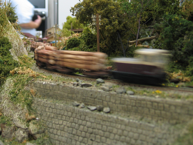 ↑木曽のキャブフォワードが牽引する運材列車がすり抜けて行きます。