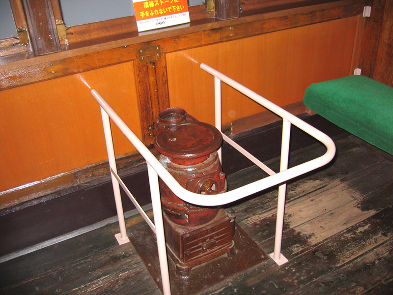 レムフ10000の車掌室内に設置された石油ストーブ。
