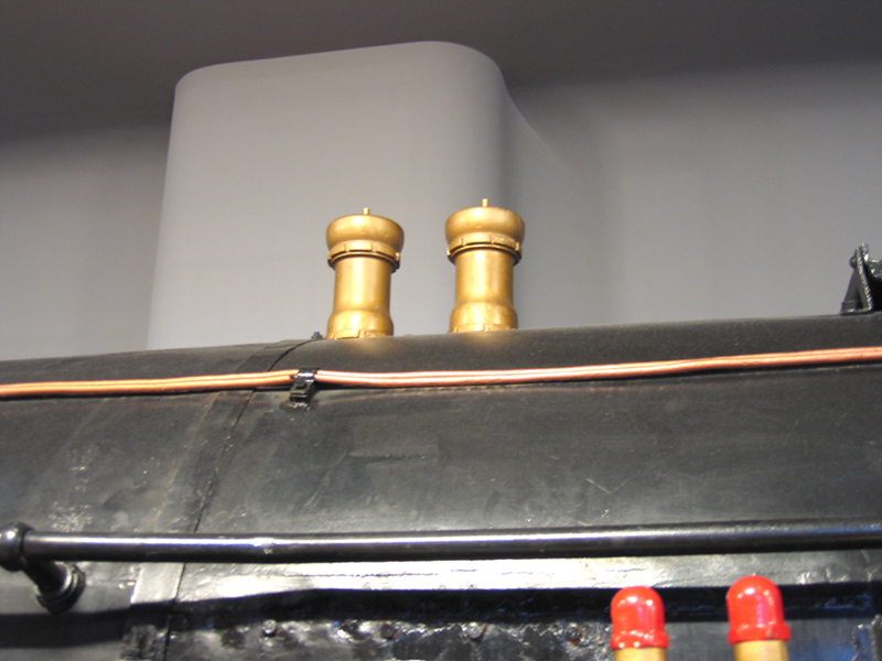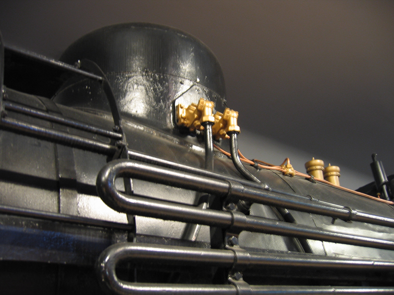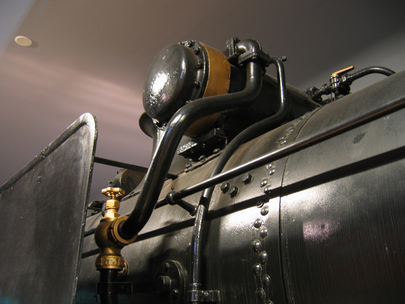 上から順に「給水温め器」、「クロスヘッド&シリンダー」、「動輪」、「砂箱&砂撒き管」、「安全弁」です。
