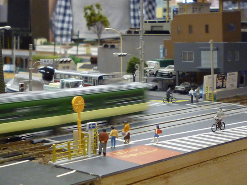 このモジュールの踏み切りは電車が接近してくると自動的に警報器が点滅します。