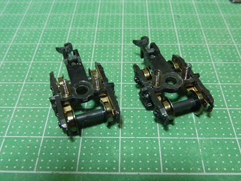 今回もKATO製の集電仕様のTR50を使用すれば楽だったんですが、この工作を始めた当初に早々にGMの台車を購入した上、今回のキットに合わせて少し手を加えていましたので、それを無駄にするのはもったいない・・・ということで、そのまま使用することにしたわけです。