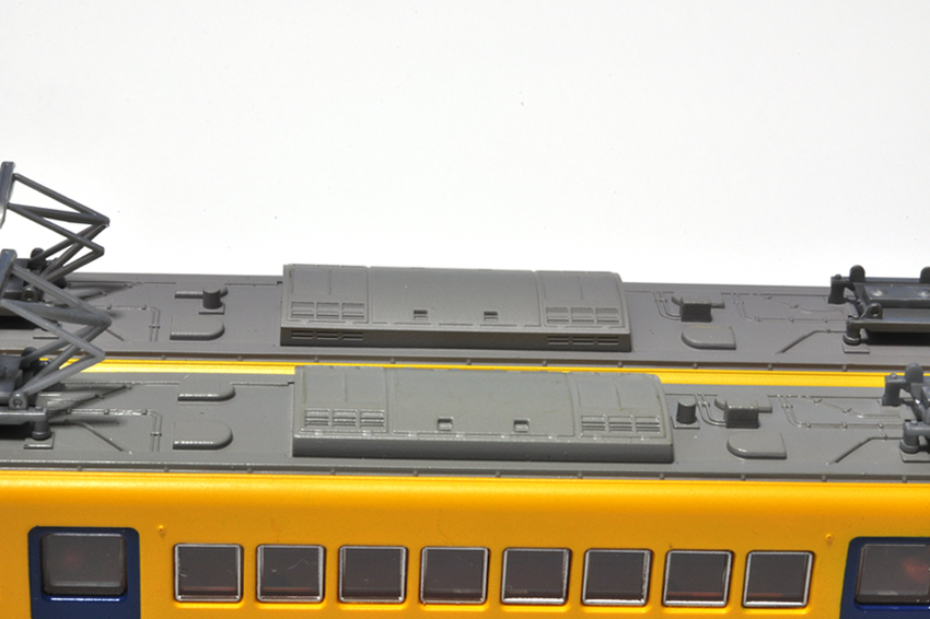 実車の種車、南海21000系第4編成以前と以降でこの機器箱のあるなしが分かれるのか、残念ながら調べがつきませんでした。