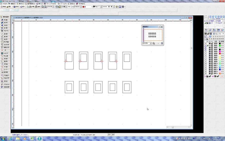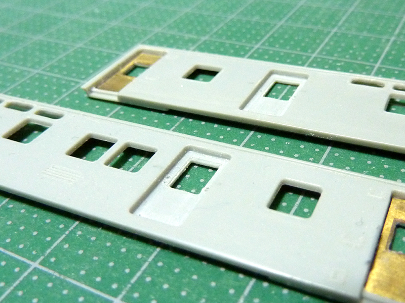 何と前回の工作記事は1年と9ヶ月も前です。 何やってんだか、自分・・・ ※参考までに前回までの記事のリンクです↓ オユ10 2557の制作・その1 オユ10 2557の制作・その2 オユ10 2557の制作・その3 オユ10 2557の制作・その4 オユ10 2557の制作・その5 オユ10 2557の制作・その6 さて実は前回横桟(正確には「荷摺り棒」と言うらしいです)を削り落とした郵便室扉ですが、その後あれこれといじくっている内に余計な穴が開いたり、窓枠をガタガタにしてしまったりと、どうリカバリすれば良いのか見当もつかない状況に陥っておりました。 モチベーションも下がりまくりのまま1年と半年以上(オイオイ)・・・ やっと、どうにかしようと重い腰を上げた次第です。 ▲わかりづらいかもしれませんが、かなりズタズタです(^^; で、まず試みたのはプラ板で扉を自作する方法。 タミヤの0.3mm厚のプラ板にケガキを入れて、デザインナイフで慎重に切り抜きます。 しかしこれが全くうまく行かず、失敗の連続。 かなりガタガタに仕上がってしまうのですよ。 これでは元のままの方がまだマシと言うレベル(笑) そこで今年の夏に仕入れた新兵器を使ってみることにしました。 その名は「クラフトロボ」。 パソコンで制御する家庭用のカッティングプロッタです。 平たく言えば紙を綺麗に切り抜いてくれる機械のことです。 メーカーの保証外の使い方として、プラ板を直接くり抜かせると言う手もあるみたいですが、替え刃も結構高価なものなので、ここはケント紙(のような紙)を使用することにします。 扉本体の他に裏から貼り合わせる窓枠があるので(パーツそのものの小ささも手伝って)強度は十分でしょう。 しかしコレを使いこなすには越えなければならない難関が・・・ 「図面引き」です。 アドビの「イラストレーター」のデータも直接読み込めるみたいですが、あんな高価なソフトは手元にないので、フリーで手に入るCADソフトを使用することにしました。 有名どころはいくつかありますが、「AR_CAD」というソフトをチョイスしてみました。 特に理由はありません。 本当はネットでも使い方指南がたくさん転がっている「JW CAD」の方が良かったのかもしれませんが・・・ そのせいか、上の簡単な図面だけで相当手こずりました。 まあ使っている内に慣れてきましたが・・・ で、早速切り出してみたのがコレ。 2組あれば良いのですが、失敗した時のことを考えて5組分切り出してあります。 ▲扉本体と窓枠を仮に重ねたもの。 ちなみに使用した紙は「プリントゴッコ印刷用紙(ハガキサイズ)」と言うもの(笑) その昔、年賀状書きにまだパソコンを導入する前に大量購入してたものの残りです。 材質がほぼケント紙と同等のようであるのと、サイズがコンパクトでちょうど良かったのが採用の理由です。 さて、この後の組み付けがうまく行けば良いのですが・・・ |