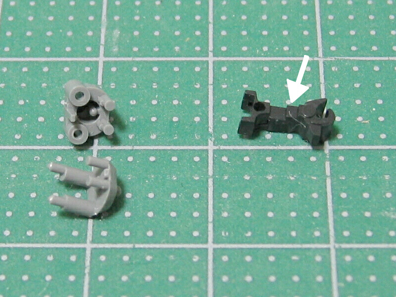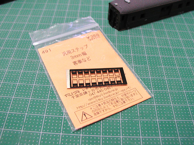 あらかじめ黒色に塗装したものをデッキ下のステップとして取り付けます。