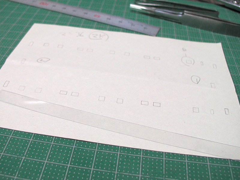 こちらは側板や妻板がまだ箱組みされる前にトレースしておいた各窓の大きさのメモです。