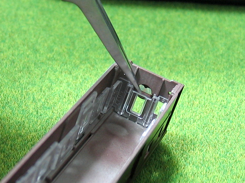 このヘッドマークはあとでプラ板か何かで塞ぎ直すことにします。