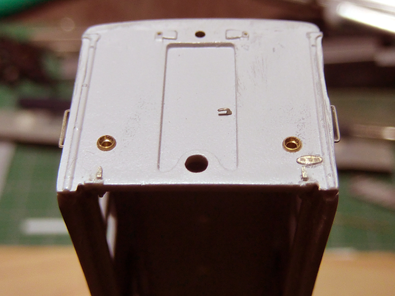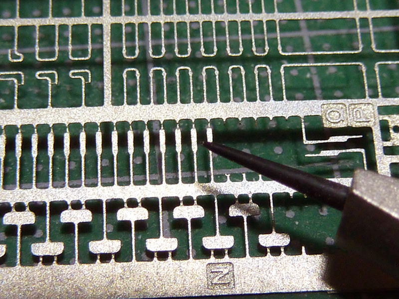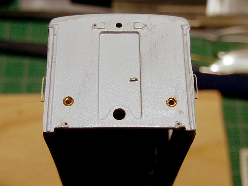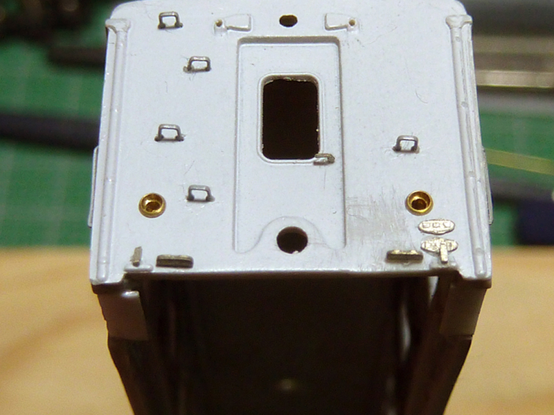 今回は、信号炎管→ホイッスル→前面のメタルインレタ→側面のメタルインレタ→手すりパーツ→製造元の社名版の順で取り付けていきました。
